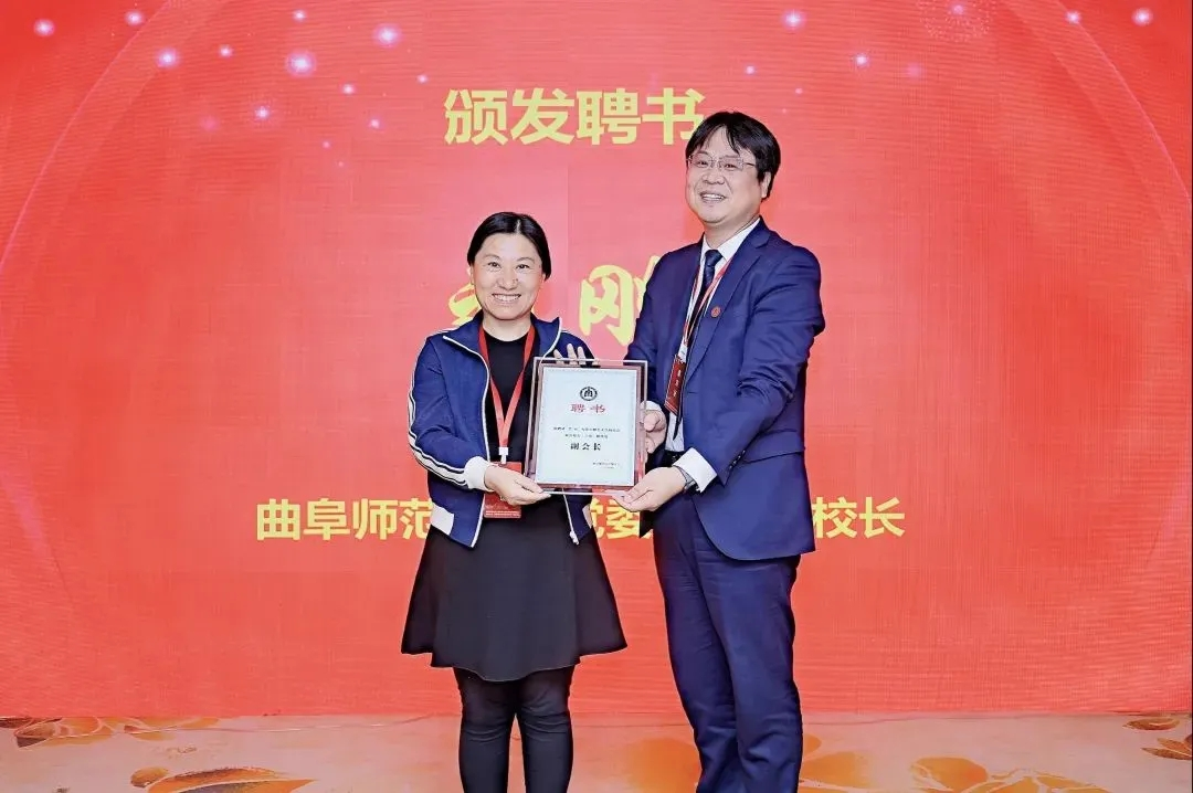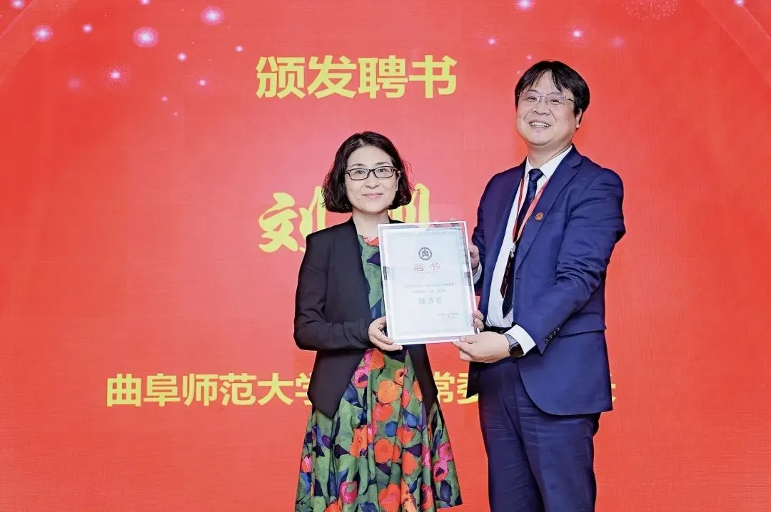 党委常委、副校长刘刚为政治分会副会长兼秘书长、政治系1990级校友孙晓红颁发聘书