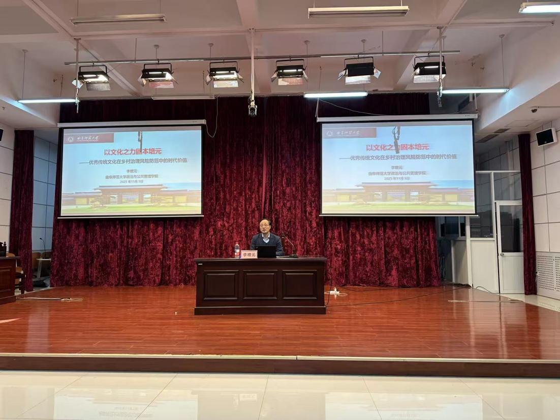 党委副书记、院长李增元围绕以文化之力固本培元——优秀传统文化在乡村治理风险防范中的时代价值主题,从乡村社会治理面临的四大风险出发,深层剖析风险背后的文化症结,提出了文化嵌入乡村社会治理固本四策,深入挖掘优秀传统文化在乡村治理风险防范中的时代价值,使得同学们了解到优秀传统文化对于乡村治理的重要性。