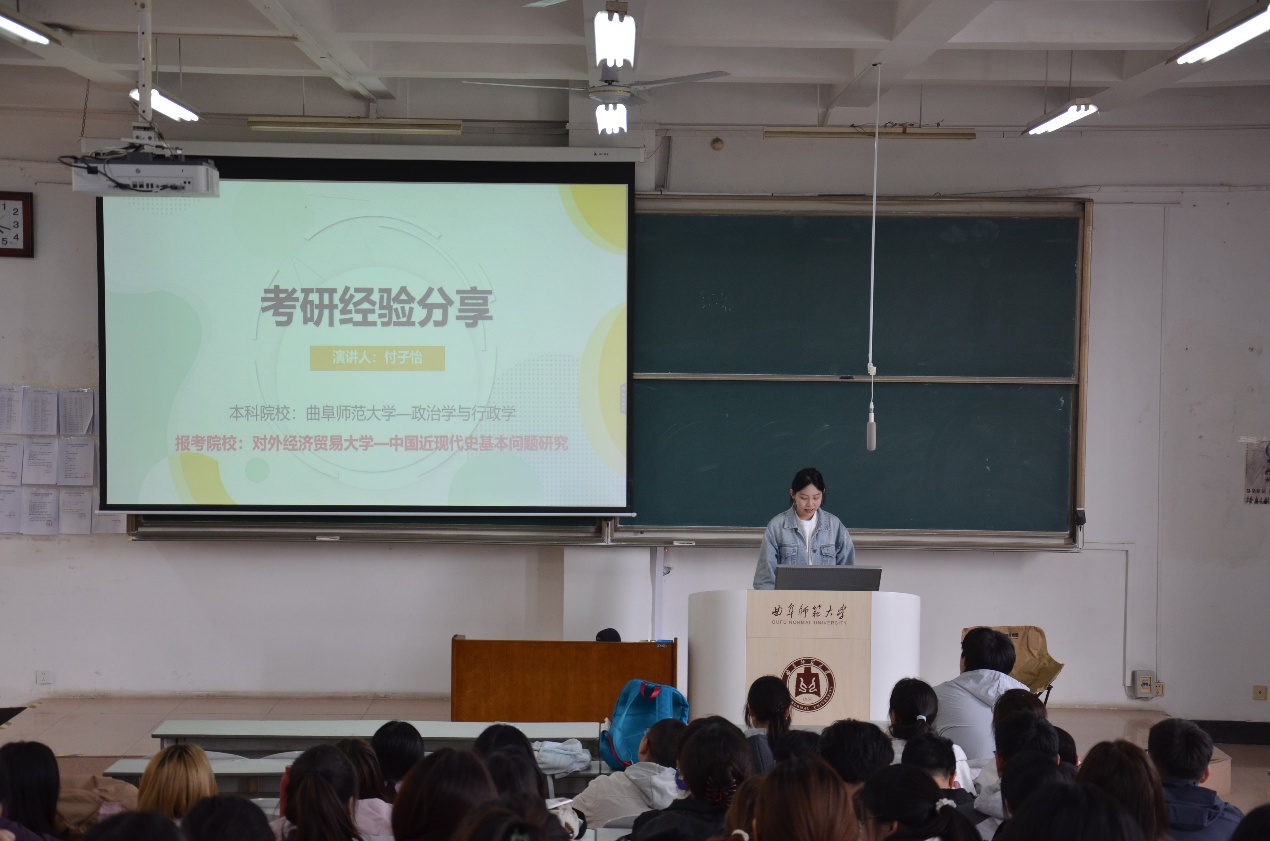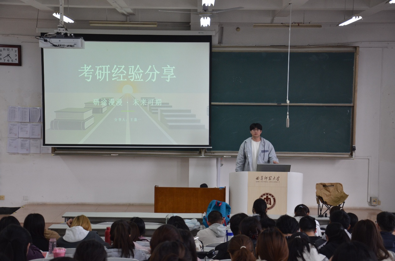 于JA304举办学长论坛考研经验分享会,邀请2026届优秀毕业生付子怡、王嘉一开展经验交流,为备考学子答疑指路,2023、2024级学生积极参会。