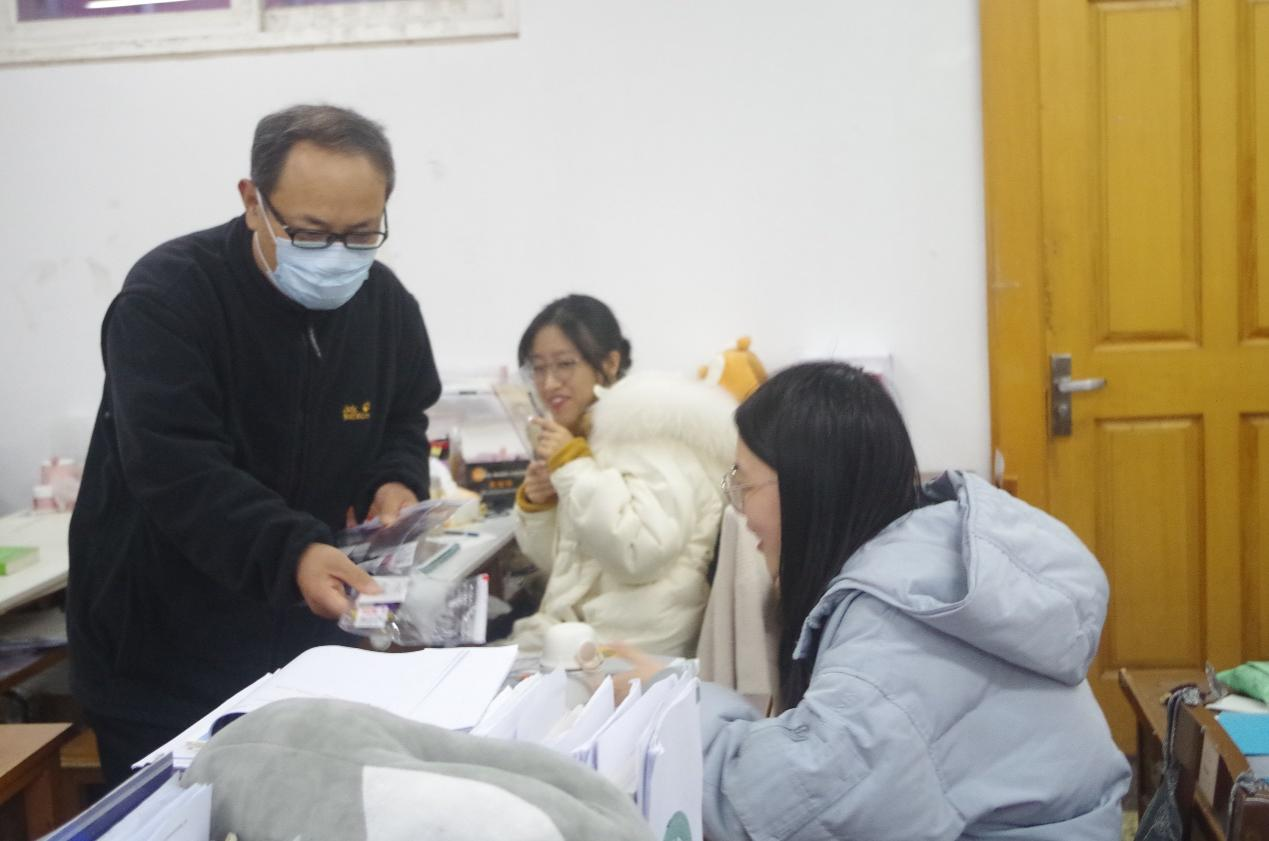 在本次走访过程中,李增元和林士俊为考研学子送上了精心准备的考研礼包,寓意从容提笔,金榜题名。李增元鼓励同学们不仅要看到挑战也要看到希望,还关心询问了考研学子的学习及生活情况,充分肯定了同学们为实现梦想不断努力,敢于拼搏的奋斗精神,鼓励同学们用奋斗书写青春。此外,林士俊还建议同学们在考研最后的冲刺阶段,根据自身实际情况及时调整复习计划,合理安排学习与休息,保重身体,并祝愿大家考试顺利,梦想成真。走访期间,一声声暖心的问候此起彼伏,小小一方天地,充满了温馨与感动。