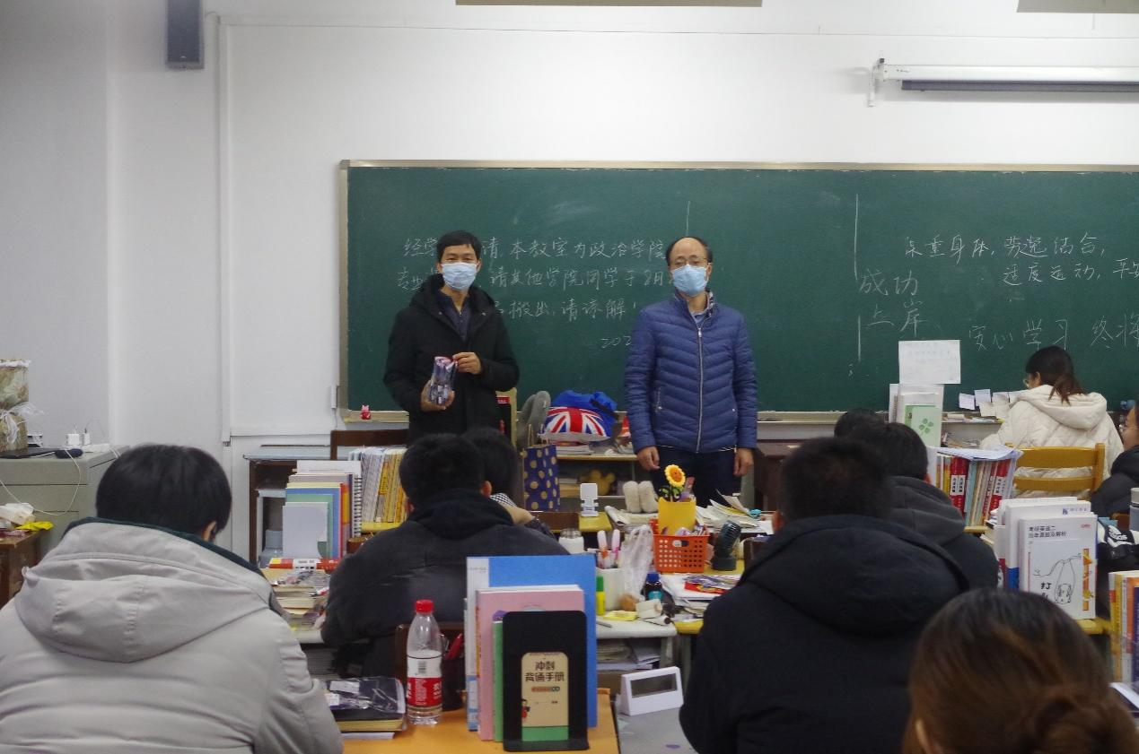 副院长李增元、林士俊,团委书记马腾,辅导员王元如、耿晓敏和团委学生干部为考研学子送去了亲切的问候和温暖的祝福。