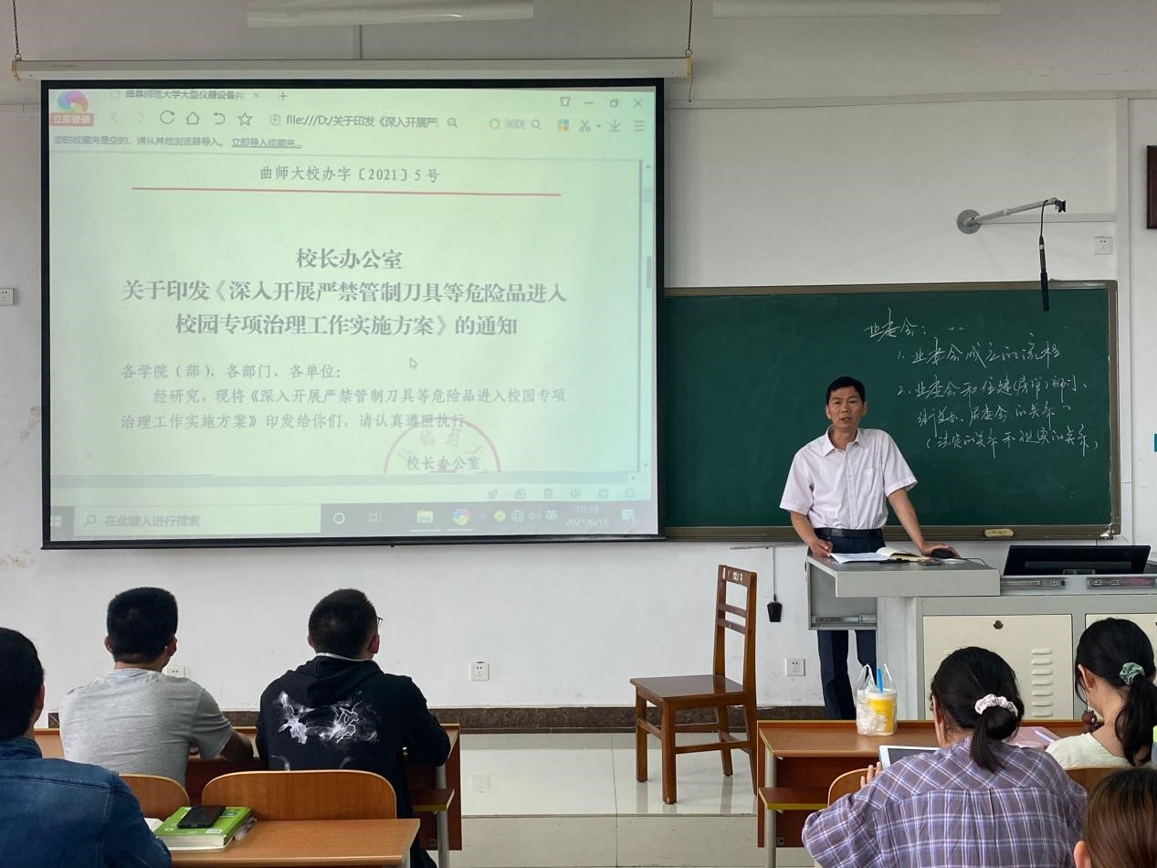 平安校园,健康成长。为贯彻落实《教育部 公安部关于严禁管制刀具等危险品进入校园的通知》和《山东省教育厅关于深入开展严禁管制刀具等危险品进入校园的专项治理工作通知》要求,有效执行校长办公室《深入开展严禁管制刀具等危险品进入校园专项治理工作实施方案》,切实保障广大师生人身安全,维护老虎机试玩