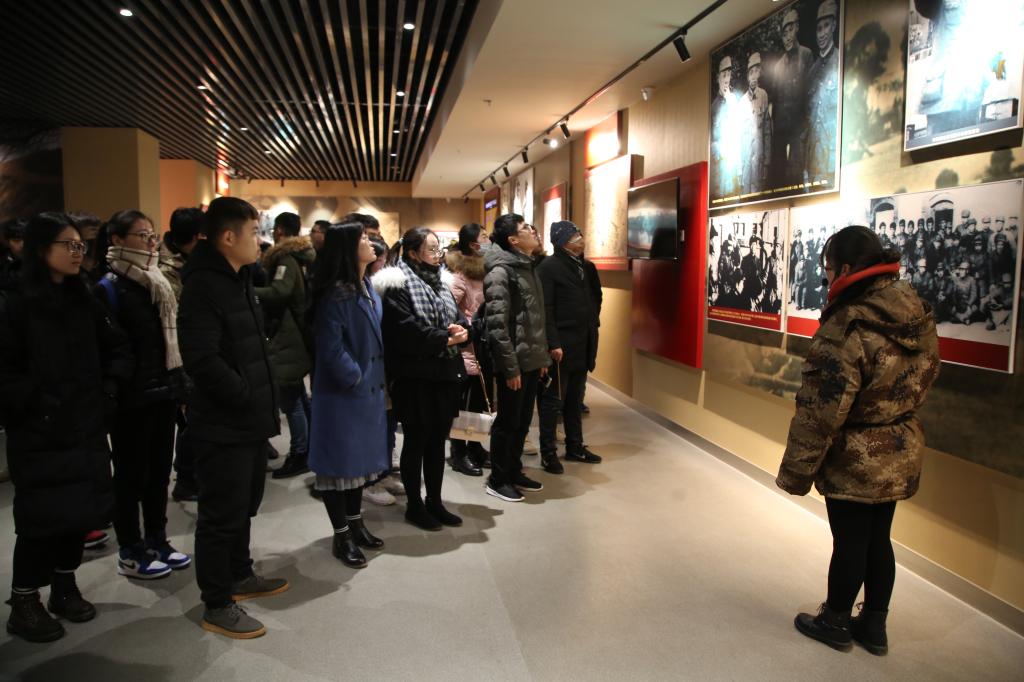 8日上午,同学们首先前往山东省政府旧址,参观省政府会议室旧址、八路军115师司令部旧址和山东抗日根据地纪念馆等革命遗址。在山东抗日根据地纪念馆,讲解员从齐鲁烽火、铁血东进、浴血抗战、中流砥柱、铜墙铁壁、光辉胜利等方面重现抗日战争年代中国抗争史,以生动的事例使在场同学无不动容,鼓励同学们更加坚定理想信念,树立远大志向。随后,全体学生抵达孟良崮战役纪念馆重温红色旅程,接受革命洗礼。讲解员从鏖战孟良崮、民兵是胜利之本两个部分展示解放战争时期我军的英勇奋战的事迹,给同学们上了一堂精彩的爱国主义教育课。