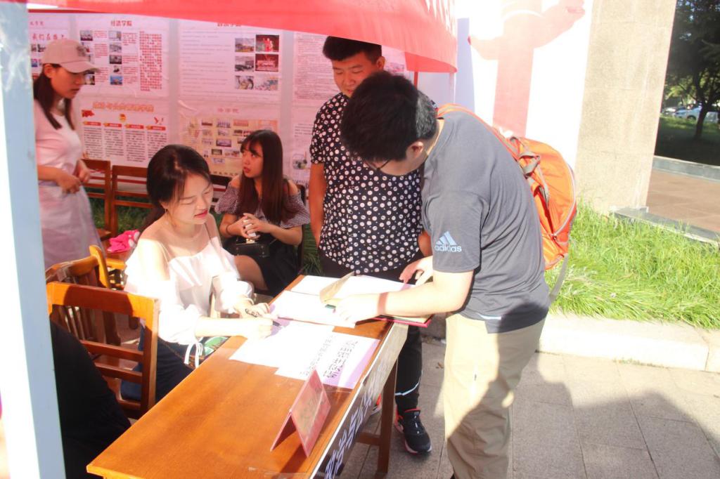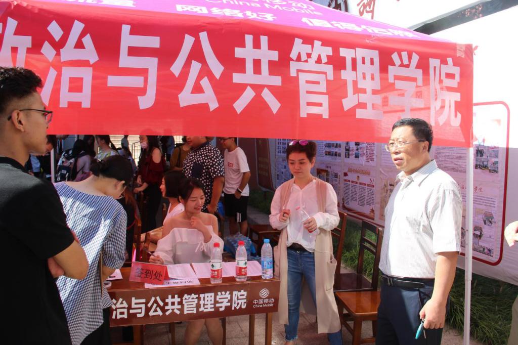 上午7时,研究生会的工作人员们精心布置展台,整理报到所需表格和相关材料,为迎新接待工作做准备。在报到点的入口处,工作人员们热情地迎接前来报到的同学,细心地为新同学解答具体的报到流程。当新生完成了在校研究生处入学报到后,随后陆续前往老虎机试玩